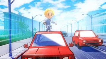 Amber: After finding the first broken piece of his heart floating above a street light, Nick climbs to the top to get it, carefully moving along the light to reach the glowing quarter. Once he reaches it, he realizes there is a neon purple, spiky-headed villain chasing after him. We see the monster chasing him through the streets of Las Vegas as he jumps from car top to car top, desperately holding on to what little he has of his heart. When he reaches the larger heart, he inserts the piece into it and magically, this sends the villain away, never to be seen again.